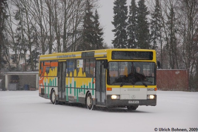 Wie so viele west-Busse wird auch Wagen 9604 mit Biodiesel betankt. Im Unterschied zu seinen Fahrzeugkollegen markiert er das nicht nur durch einen grünen Punkt auf seiner Tankklappe, sondern auch durch (s)eine Vollwerbung.