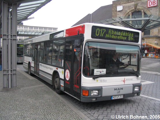 So, hier nun ein 1998er MAN NL 222 im aktuellen Lackschema: Wagen 9815 pausiert gerade vor dem Bahnhofsgebäude.