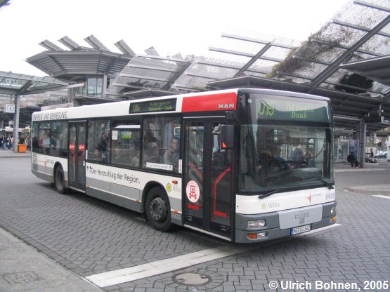 Hier sehen wir Wagen 9909, der gerade in Richtung Mönchengladbach-Neuwerk fährt.