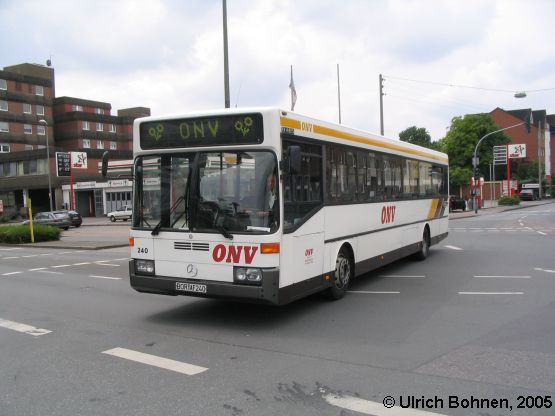 Und hier einmal eine liebevoll gestaltete Anzeige aus dem Hause ONV :-) : Wagen 240, ein Mercedes-Benz O 405 (Kennzeichen: BOR-AF 240), fährt hier gerade auf den Weseler Busbahnhof zu.