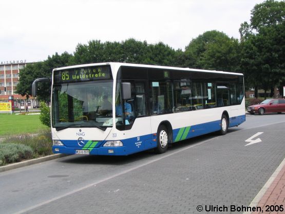 Im August 2003 stellte die NIAG 11 EvoBus-Mercedes O 530 Citaro in Dienst. Eines dieser Exemplare ist Wagen 3531, der gerade als Linie 85 den Busbahnhof der niederrheinischen Stadt Wesel verlässt.
