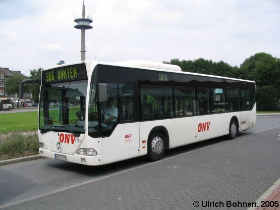 Dieser EvoBus-Mercedes O 530 (BOR-O 270) ist mit einer RVN-Nummer (3154) ausgestattet und wird von Wesel aus als Schnellbus der Linie SB 6 nach Xanten fahren.