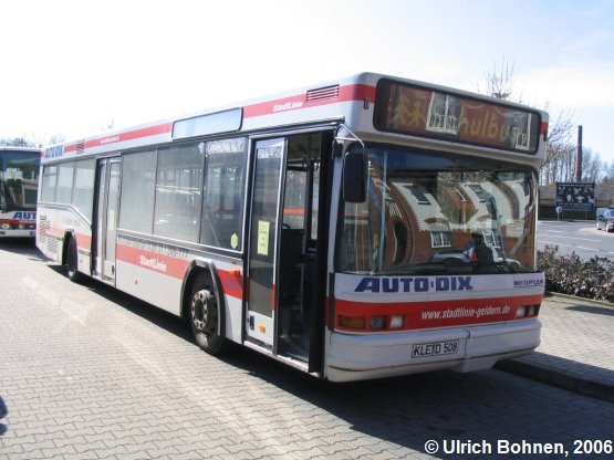 Dieser Neoplan N 4014 fuhr ursprünglich bei der Firma Groeger aus Hattingen. Seit einigen Jahren wird der Niederflurbus von Auto-Dix aus Geldern im Gelderner Stadtbussystem eingesetzt. Das Bild entstand am Bahnhof.
