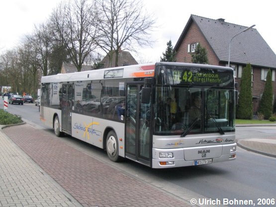 Auch MAN A 21 gehören zum Verhuven-Fuhrpark. Dieser hier wird der Lackierung nach als Stadtbus in Xanten eingesetzt.