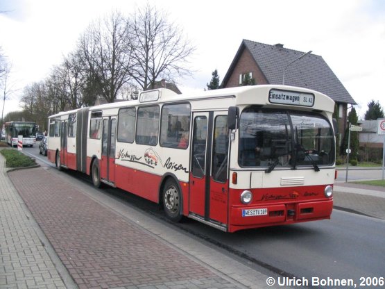 Der ehemalige Wagen 4261 bzw. 261 der Bremer Stadtwerke war zum Aufnahmezeitpunkt bereits 23 Jahre alt. Der Mercedes-Benz O 305 G erfreut sich aufgrund seiner soliden Bauweise immer noch bester Gesundheit.