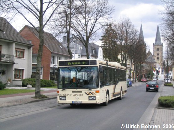 Ein weiteres größeres Busunternehmen aus Xanten ist der Reisedienst Janssen. Hauptsächlich werden Fahrzeuge der O-405er-Serie von Mercedes eingesetzt, so wie etwa dieser EvoBus-Mercedes O 405 NÜ.