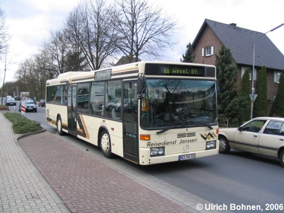 Hier noch einmal der bereits gezeigte EvoBus-Mercedes O 405 NÜ, diesmal von der Türseite aus gesehen. Dieses recht seltene Fahrzeug konnte ebenfalls auf der Bahnhofstraße in Xanten angetroffen werden.