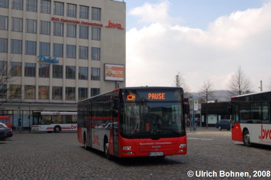 Am Bielefelder Hauptbahnhof befindet sich auch die Zentrale der BVO. Man beachte das Gebäude im Hintergrund...