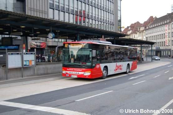 Auch Setra S 415 NF können im BVO-Fuhrpark angetroffen werden. Wagen 728 hält gerade am Jahnplatz in Bielefeld.