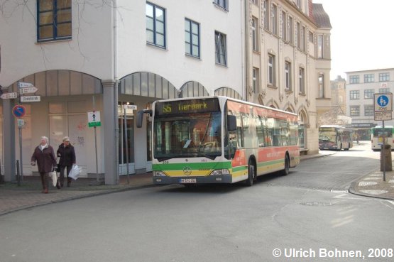 In Herford gibt es ein Stadbus-System, das von der VMR (Verkehrsgesellschaft Minden-Ravensberg) betrieben wird. Wagen 252 hat gerade die zentrale Haltestelle Alter Markt verlassen.