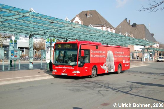 Eine volle Vollwerbung für die Sparkasse Herford trägt dieser Stadtbus am Herforder Bahnhof.