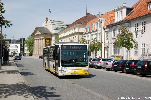 Für den Stadtverkehr Detmold erhielten einige BVO-Busse ein abweichendes Design: Dies ist der Wagen 705, der an der Haltestelle Rosental fotografiert werden konnte.