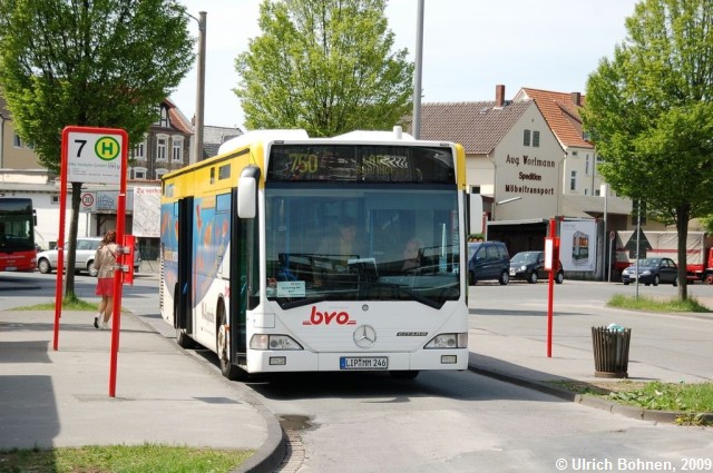 Dieser Bus der Firma Motzek aus Lage zeigt auf der Front, in wessen Auftrag man unterwegs ist.