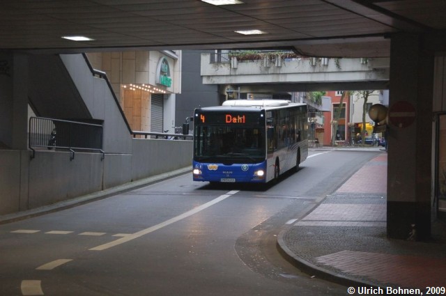 Die Haltestelle Zentralstation in der Paderborner Innenstadt befindet sich fast schon unterirdisch im Dunklen. Wagen 11 erreicht diese in Kürze.