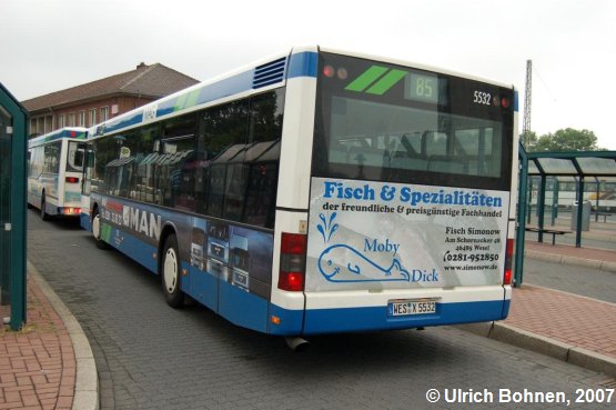 Auf dem Heck allerdings ist eine Werbung für einen Fisch-Fachhandel in Wesel angebracht.