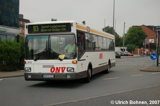 Dieser MAN SL 202 war in seinem früheren Leben sicherlich auch das eine oder andere Mal am Weseler Bahnhof anzutreffen, denn der ONV-Wagen 273 ist der ehemalige NIAG-Bus Nr. 5336.