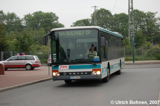 Noch auf den BVR zugelassen ist dieser EvoBus-Setra S 315 NF, bei dem der vordere BVR-Schriftzug notdürftig mit einem RVN-Aufkleber überklebt wurde, während an den Seiten weiterhin BVR zu lesen ist.