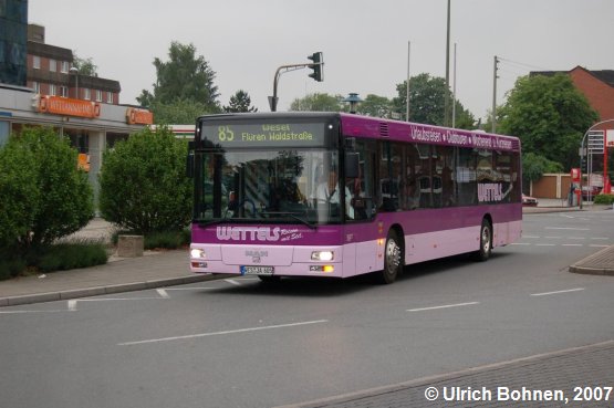 Zum Abschluss dieser Fotoserie gibt es noch den WES-JA 605 von Wettels aus Rheinberg zu sehen. Der MAN ist wie alle Wettels-Linienbusse mit einem auffälligen Lackierungsschema versehen.