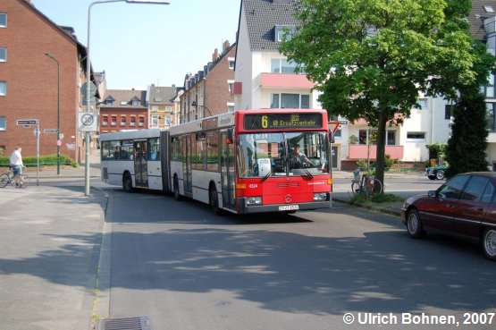 Mit einer Rollbandanzeige für die Linien-Nummer ausgestattet ist z. B. der Wagen 6524 der Rheinbahn, der in Düsseldorf-Eller im SEV-Einsatz fotografiert werden konnte.