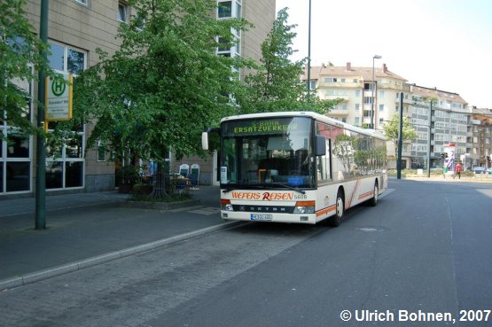 Er verbringt eine Pause am Düsseldorfer Hauptbahnhof.