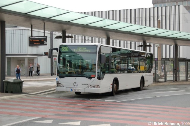 Elba aus Wuppertal setzt u. a. diesen EvoBus-Mercedes Citaro älteren Baujahres ein. Der Bus ist mit einer Überlandfront ausgestattet und konnte am Graf-Wilhelm-Platz fotografiert werden.