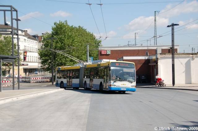 Im Hintergrund befindet sich das (überschaubare) Bahnhofsgebäude des Hauptbahnhofes der Klingenstadt.