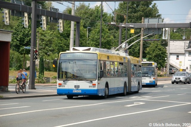 Die Haltestelle mit dem unheimlichen Namen "Werwolf" hat Wagen 259 gerade verlassen und wird bereits wenige Sekunden später am Bahnhof Mitte halten.