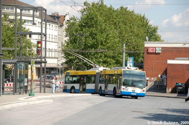 Aber wir kehren nochmals zum Solinger Hauptbahnhof zurück, da diese Fotoserie alphabetisch sortiert ist. Wagen 262 legt sich unter dem so genannten DB-Keks mächtig in die Kurve.