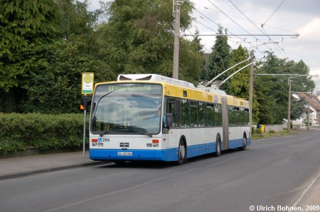 In Solingen-Hästen hat Wagen 266 gerade die Endausstiegshaltestelle erreicht.