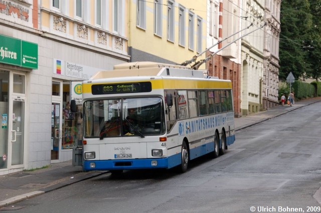 Alle MAN-O-Busse wurden vor ein paar Jahren mit einer Matrix-Zielanzeige ausgerüstet; darüber hinaus erhielten manche Busse im Rahmen einer Generalsanierung eine neue Lackierung im aktuellen Design der Stadtwerke Solingen.