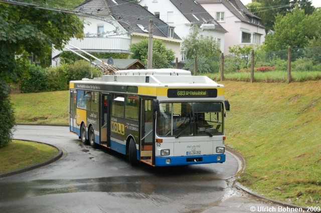 Einige Fahrten der Linie 683 werden bis nicht Solingen-Burg durchgeführt, sondern enden bereits in Krahenhöhe. Hier konnte Wagen 52 erneut fotografiert werden.