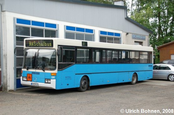 Im Februar 1986 wurde dieser Mercedes-Benz bei den Stadtwerken Remscheid als Wagen 06 in Dienst gestellt; seit 2003 trägt dieser Bus bei Haas das Kennzeichen AK-RH 10.