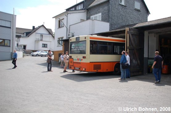 In den Hallen sind u. a. zwei Mercedes-Benz O 405 ex RVK, Köln, abgestellt. Natürlich wurden diese für die weit angereisten Busfans aus den nicht zu großen Hallen heraus gefahren.