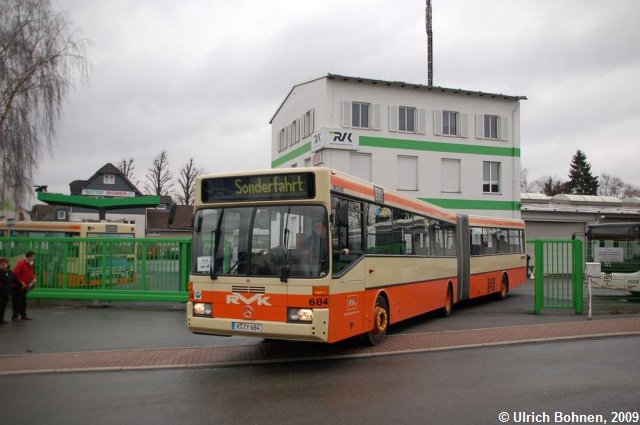 Nach dem Teilstück mit dem anderen RVK-Fahrzeug (Bilder folgen später in dieser Fotoserie) wurde ab mittags wieder der KOM 684 benutzt. Hier verlässt er gerade die RVK-Verkehrsstelle Wermelskirchen.
