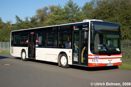 Natürlich gibt es auch normallange Fahrzeuge bei Grimm: im Januar 2006 kaufte man sich diesen MAN NL 313 (Lion's City), der mit einer Klimaanlage für den Fahrerarbeitsplatz ausgestattet ist.