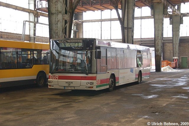 Das erste Bild der Fotoserie zeigt diesen 1999 gebauten MAN NÜ 263, der auf dem eindrucksvollen Betriebshof der Mülheimer Verkehrsgesellschaft abgestellt war. Der BVR-Wagen 9013 verkehrt hauptsächlich auf Mülheimer Stadtgebiet im Auftrag der MVG.