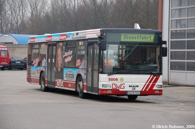 Urban-Reisen aus Gladbeck bzw. Bottrop setzt mehrere Leihwagen der Duisburger Verkehrsgesellschaft auf DVG-Linien ein. Auf dem Urban-Betriebshof in Bottrop konnte der 1998 gebaute Wagen 5806 fotografiert werden.