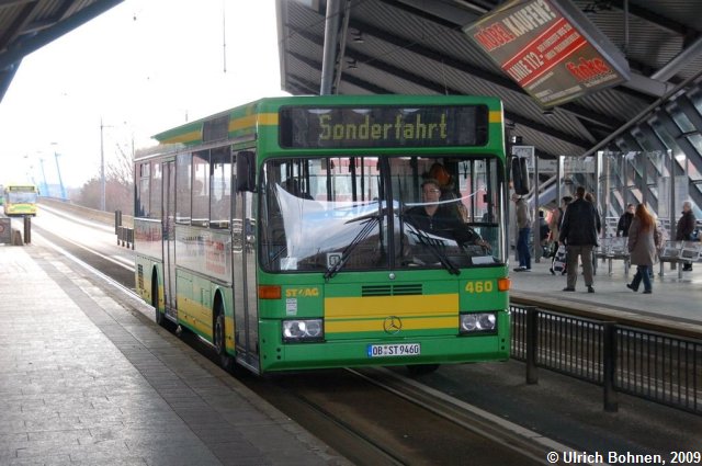 Kurzer Aussteigehalt an der Haltestelle Neue Mitte am Oberhausener CentrO.