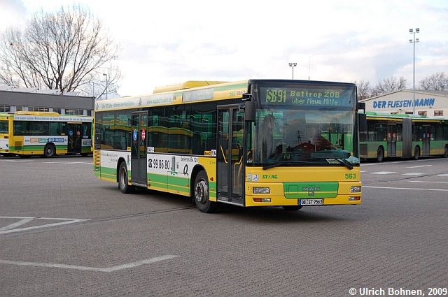 Im Hintergrund sieht man den Stauraum auf dem Betriebshof. Dort werden alle einkommenden Busse durch die Fahrerinnen und Fahrer abgestellt und von weiteren Mitarbeitern gereinigt und betankt.
