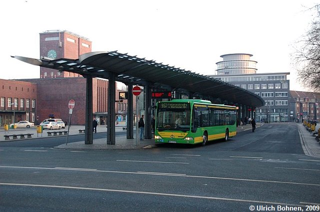 Auf diesem Bild ist schön der Mitte der 90er Jahre neu gestaltete Busbahnhof vor dem Oberhausener Hbf. zu sehen.