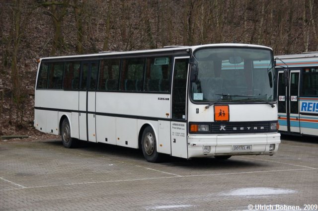 setzt im Schülerverkehr diesen Kässbohrer-Setra S 215 HR ein. Der Bus ist neben
