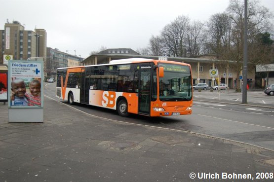 Hier verlässt der Bus gerade die Abfahrtshaltestelle am Wuppertaler Hbf. und fährt nun zur Ruhr-Universität in Bochum.