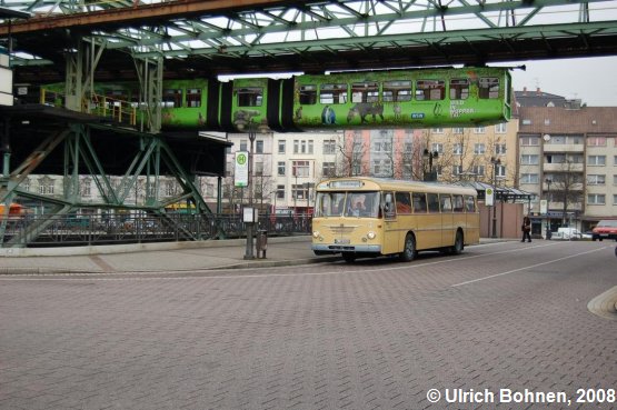 In Wuppertal-Oberbarmen am dortigen Bahnhof besteht die Möglichkeit Busse und Schwebebahn zeitgleich zu fotografieren. Dort befindet sich ein Ende, bzw. ein Anfang, der Schwebebahnstrecke.