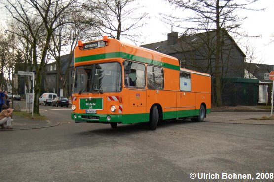 Wie schon erwähnt, wurde bei diesem Bus 1991 der Nachläufer entfernt und der frühere Gelenkbus zum Werkstatt- und Turmwagen umgebaut.