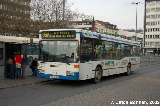 Den Abschluss dieser Fotoserie bildet der WSW-Wagen 9705, der kurz nach Entstehen dieses Fotos als CityExpress-Linie 64 in die Wuppertaler Nachbarstadt Solingen fuhr.