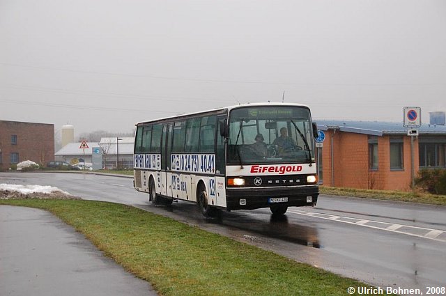 Eine Gruppe beförderte dieser 1993 gebaute Kässbohrer-Setra S 215 UL von Eifelgold im Rahmen einer Sonderfahrt zum Weihnachtsmarkt. Bis 2001 verkehrte der Bus auf der Ostsee-Insel Rügen.