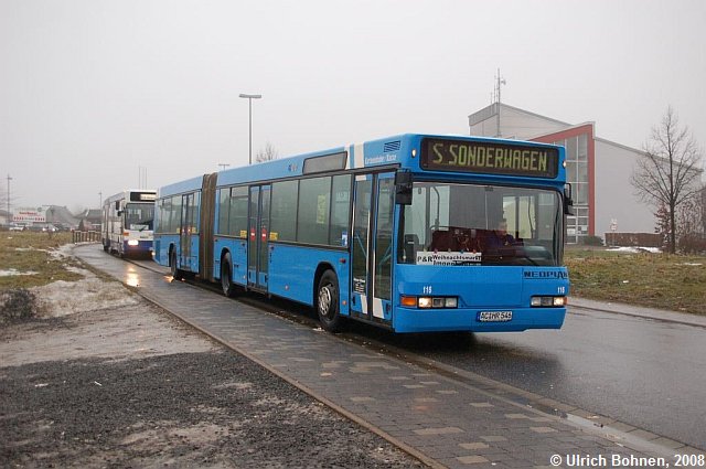 Ende 2008 beschaffte die Firma Rüssel aus Stolberg drei Neoplan N 4021, die 1997 bei der KVG in Kassel ihr erstes Leben begannen. Noch in der Originallackierung zeigt sich der ehemalige KVG-Wagen 116 in Imgenbroich.