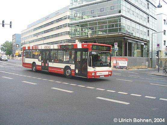 1993 stellte die ASEAG eine Reihe von MAN A 10 (NL 202) in Dienst, die mittlerweile größtenteils ausgemustert wurden. Immer noch in Dienst ist jedoch der Wagen 767, einer der wenigen ASEAG-Solobusse, der am Samstag Nachmittag des 07.08.2004 den Bushof ansteuerte.
