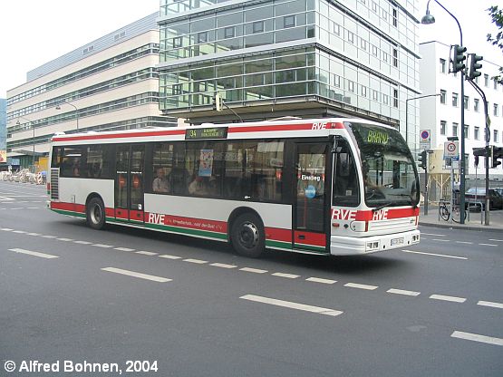Die RVE (Regionalverkehr Euregio Maas-Rhein GmbH) ist eine Tochterfirma der BVR (Busverkehr Rheinland GmbH). Alle RVE-Fahrzeuge liefen bisher bei der BVR, so auch dieser Bus der mittlerweile insolventen niederländischen Firma Den Oudsten, ein Vertreter des Typs B 96 DL595. Das Fahrzeug wurde im Jahre 2000 erstmals (auf die BVR GmbH) zugelassen.