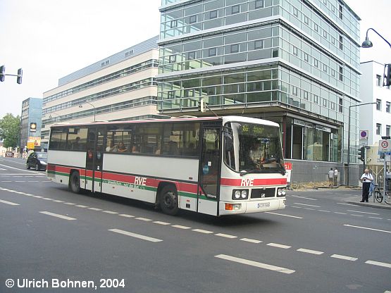 Ein typischer RVE-Fahrzeugtyp ist der MAN ÜL 312, der gleich 15x im Fuhrpark vertreten ist. Ein Vertreter der 1995 durch die BVR beschafften Busse ist der Wagen mit der Funk-Nr. 2218. Wie viele andere Omnibusse der BVR/RVN/RVE trägt auch dieses Fahrzeug den Slogan "Umweltschutz ... nutz' den Bus!".